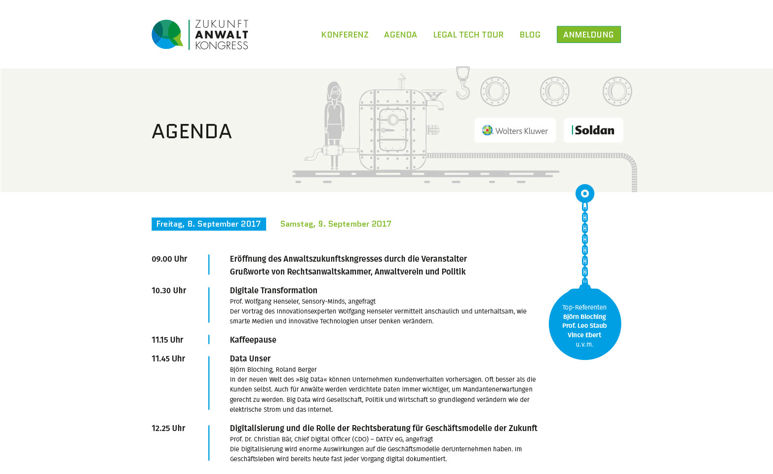 Zur zweiten Austragung des Anwaltzukunftskongresses 2017 gestaltete ich den Außenauftritt der Veranstaltung neu – mit einem Keyvisual und dem Redesign der Website.