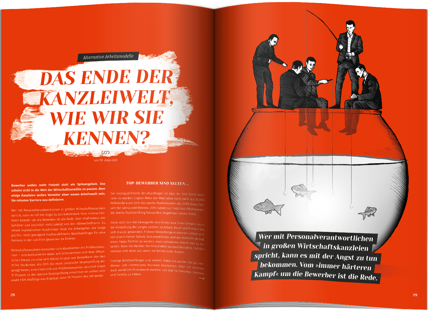 2015 rief die LTO ihre jährliche Printsonderausgabe ins Leben. Entgegen der branchenüblichen konservativen Gestaltung, sollte dieses Magazin ins Auge fallen, gewagt & kreativ sein.