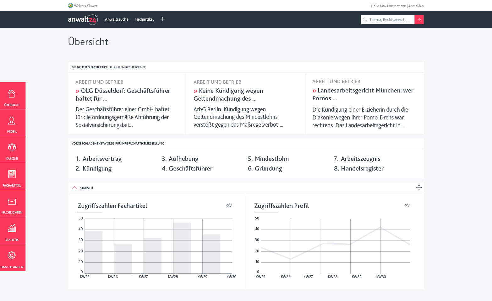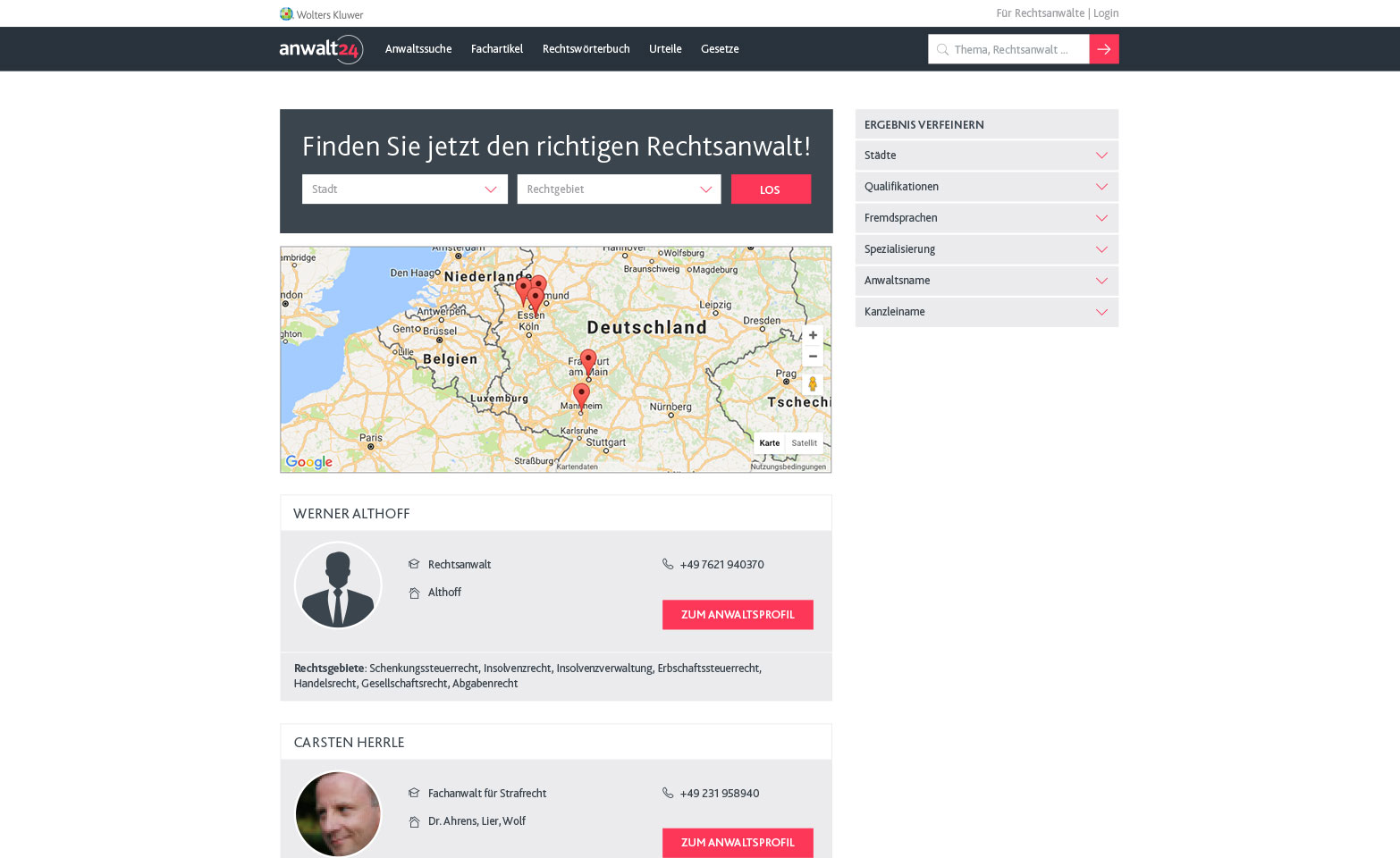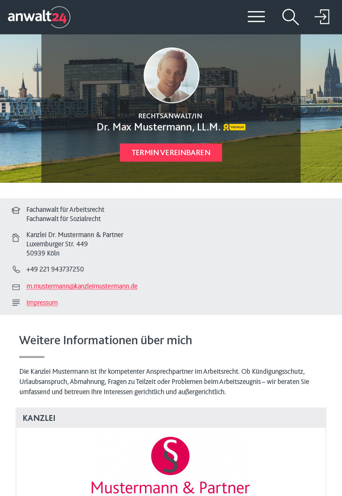 Als Schwesterportal von smartlaw.de hieß es beim Redesign von anwalt24.de Navigationselemente zur Wiedererkennung zu verwenden und trotzdem ein eigenständiges Portal zu kreiieren.