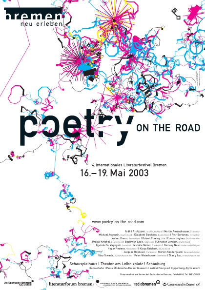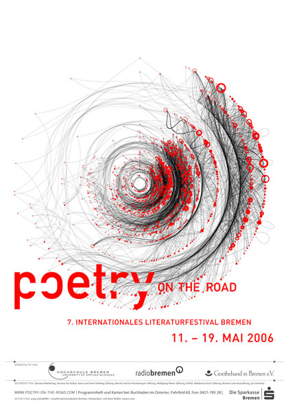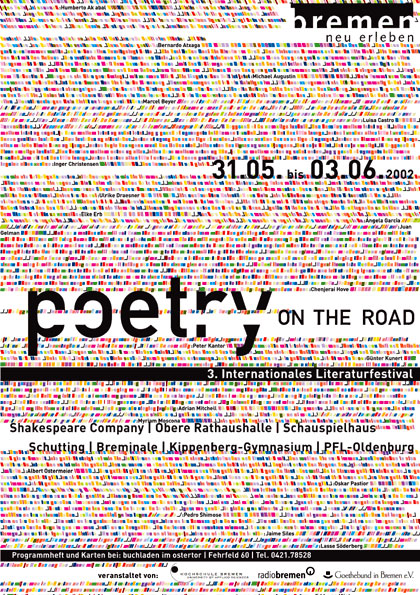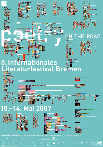 Die Bremer Werbeagentur »oneone« (ehemals »Jung&Pfeffer«) gestaltet seit einigen Jahren die Plakate für die Veranstaltung »poetry on the road« in Bremen. Ich war stets beeindruck von den Muster- und Formbasierten Layouts. Diese Arbeiten haben meine Plakatserie extrem beeinflusst.